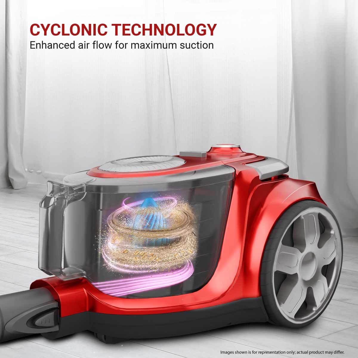 - Cyclonic Technology – Ensures powerful, dry vacuum cleaning across tile, marble, carpet, and wood. Enhances airflow, maintains strong suction, and separates dust efficiently from the air.